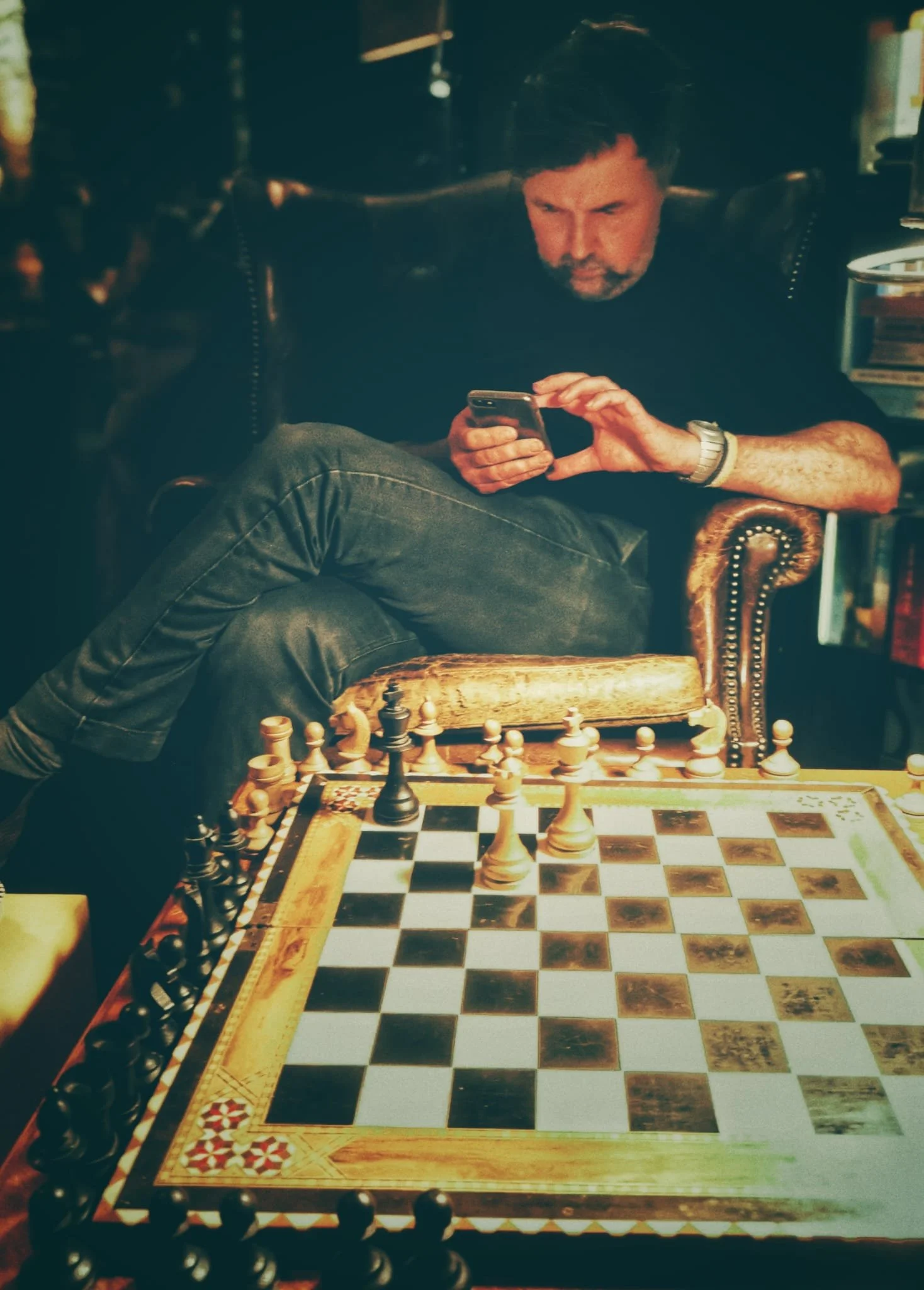 De Welgemutste duwde door. Vinitov verzon een paragraaf. Toen hij weer opkeek, zag hij vier torens tegenover elkaar staan op rij A. Dat had hij waarlijks nog nooit eerder gezien. De dame dreigde ook, een losse loper kwam eveneens meespelen met de grote jongens. En heel in de verte stond een pionnetje op een fractie van een geslachtsverandering, maar die laatste stap is altijd zo moeilijk.